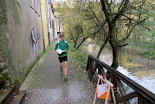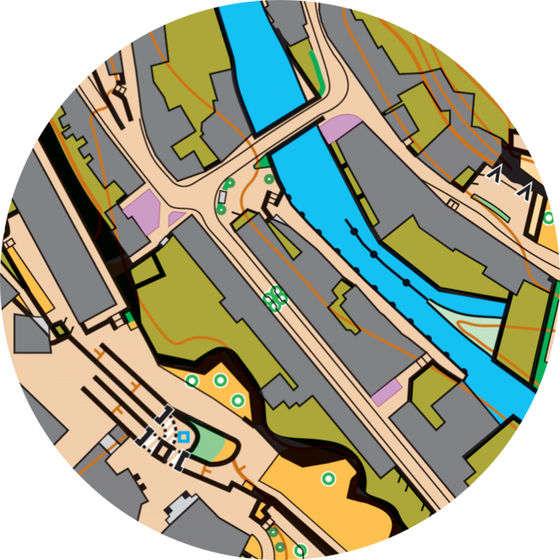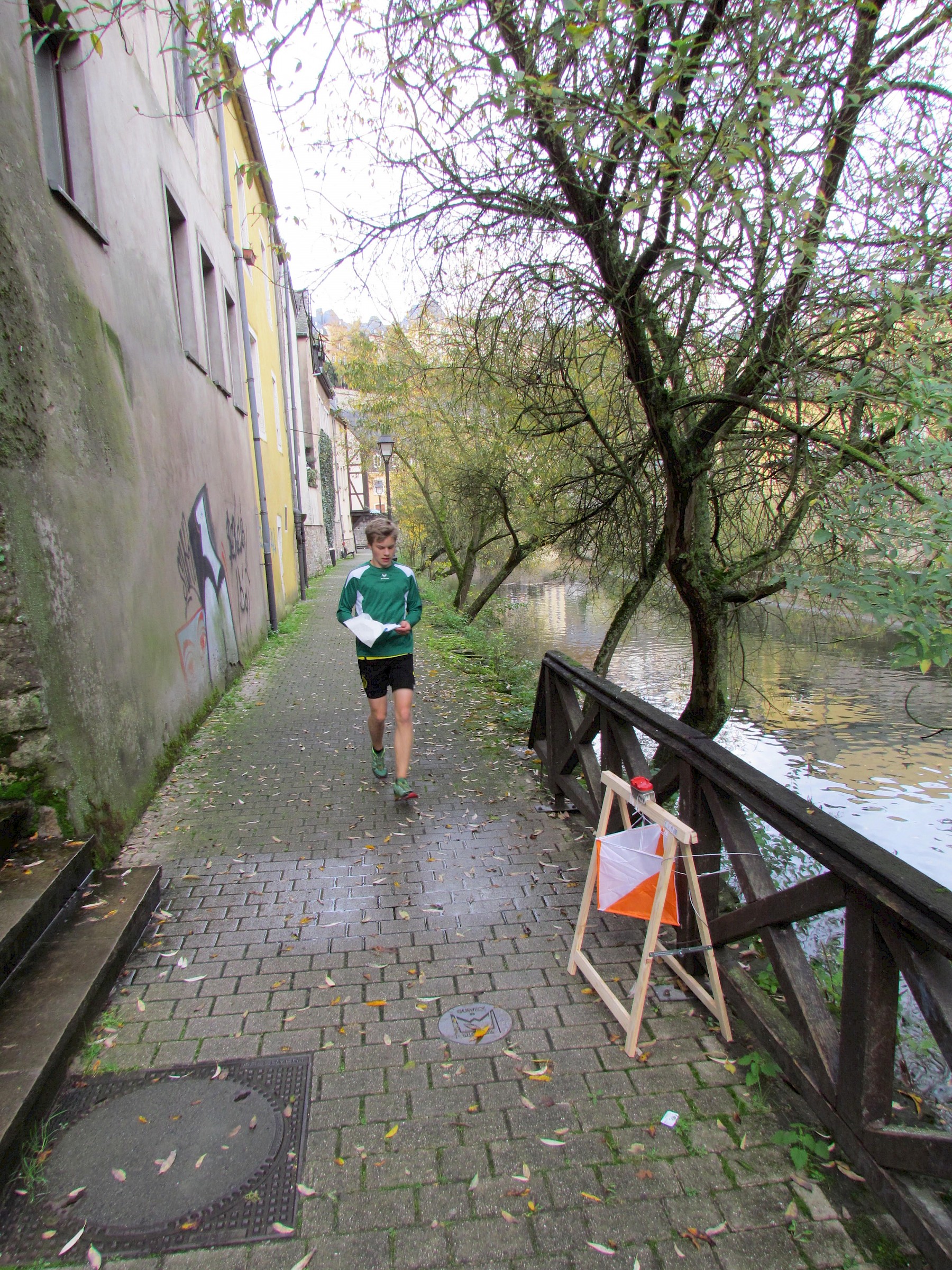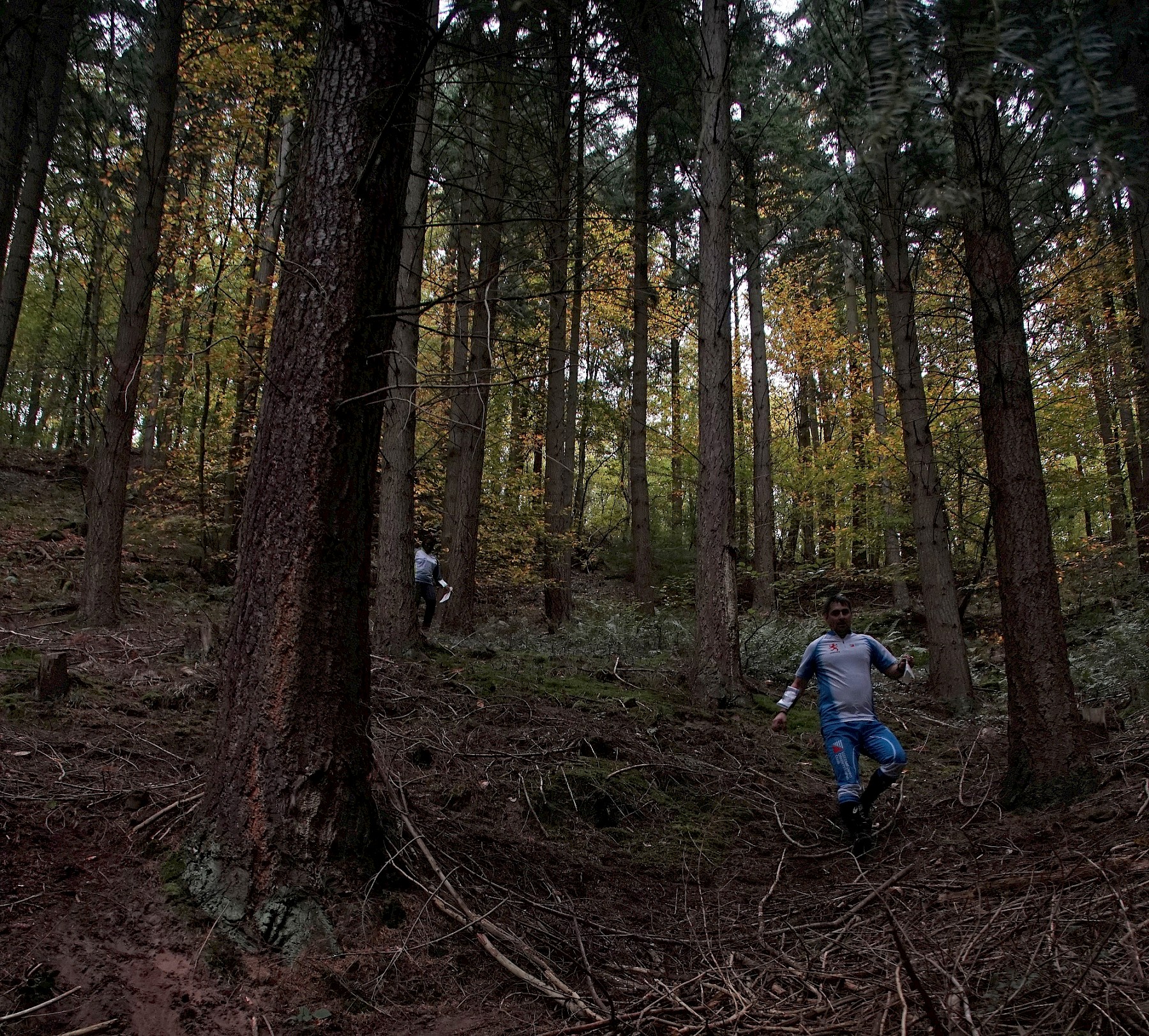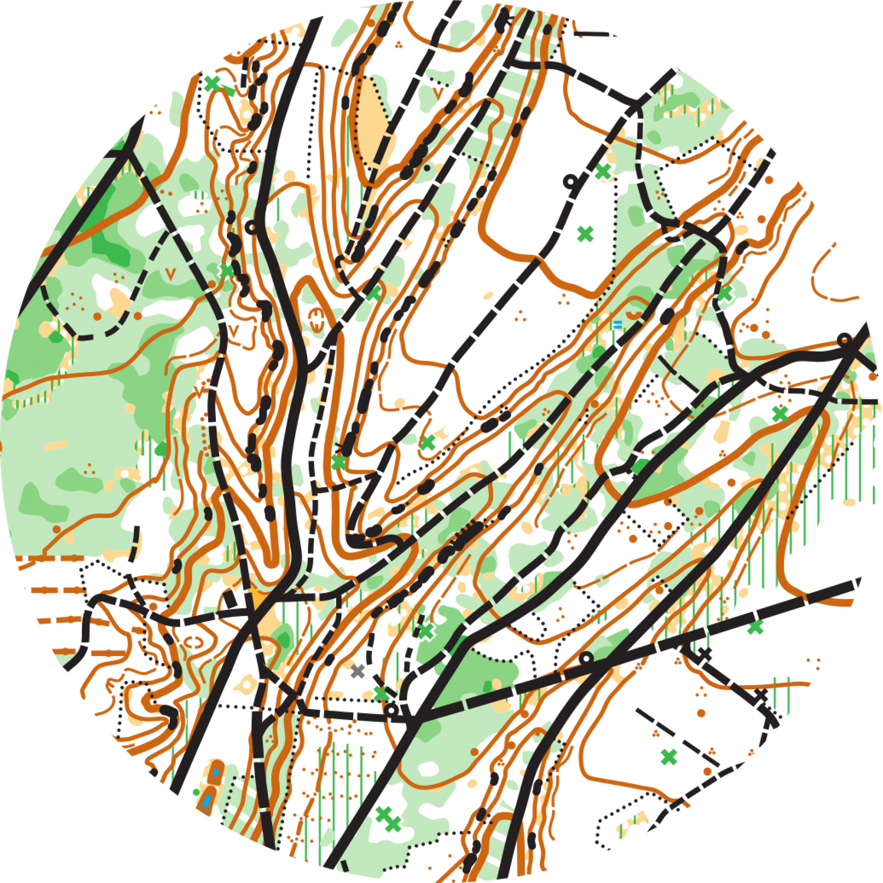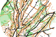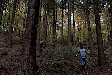 Near-city forest with a dense network of paths and tracks, predominantly beech forest with some mixed pine and fir tree areas, cut by shallow valleys enclosed sandstone rock-faces. Runnability very good to medium.
